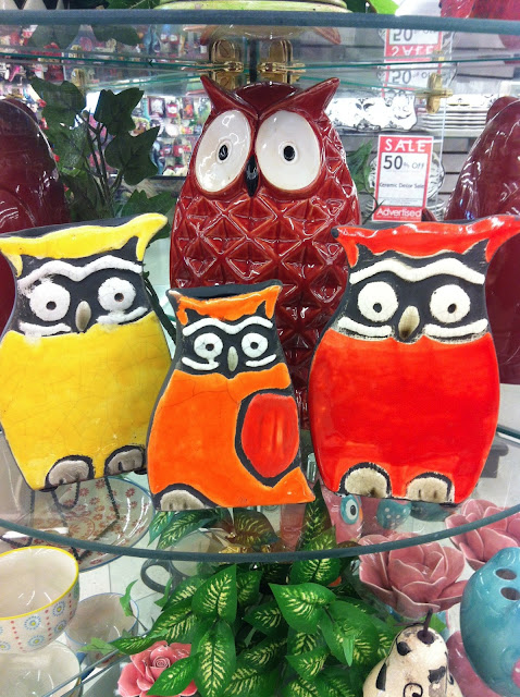 Colorful owls! If these buddies had fit w/in my color scheme, they would have made it home with me. As far as I know, I have no owl restrictions for our house :)